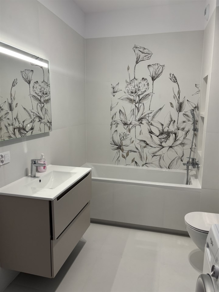 Lokal składa się z 3 pokoi, w tym salonu z aneksem kuchennym, łazienki, dwóch sypialni oraz hallu.